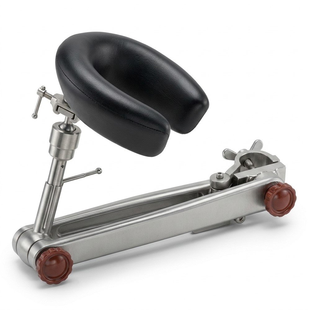 Sistema de Posicionamiento Craneal Multi-axial de Alta Precisión Maximice el control y la estabilidad durante procedimientos neuroquirúrgicos y cervicales con el soporte de cabeza multi-axial de Mizuho. Diseñado para ofrecer una flexibilidad total, este accesorio permite ajustes milimétricos en múltiples ejes, garantizando una exposición quirúrgica óptima. Su almohadilla anatómica en forma de “C” y su estructura de acero inoxidable de grado médico aseguran una distribución de presión uniforme y una fijación ultra-estable a los rieles de la mesa de operaciones.
